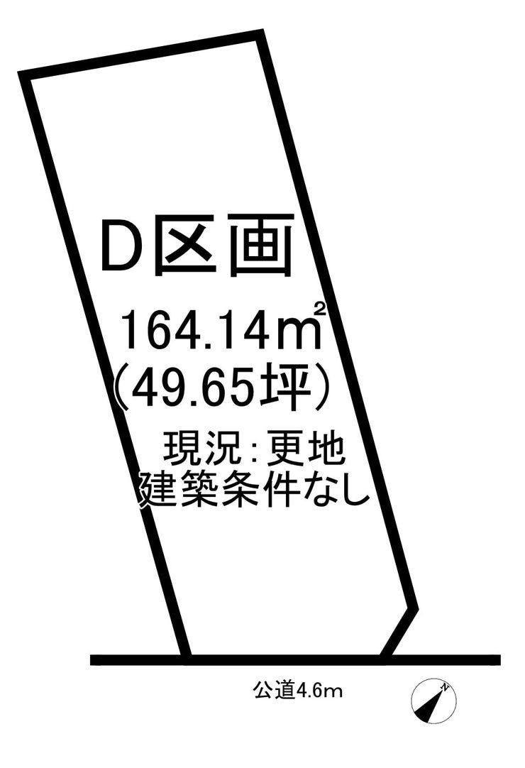 | 土地面積 | 164.14㎡(49.65坪) | 接道 | 北東側(公道)幅 約6.0m 南東側(公道)幅 約4.6m 間口 約4.80m |
