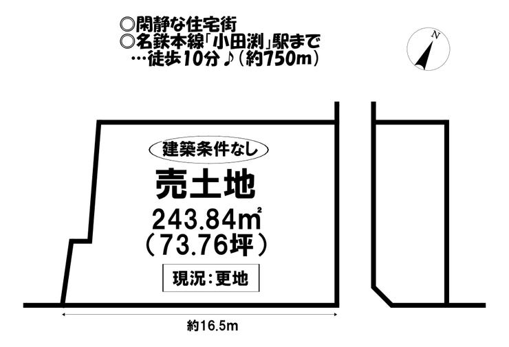 | 土地面積 | 公243.84㎡(73.76坪) | 接道 | 南側(公道)幅 約7.0m 間口 約16.50m |
