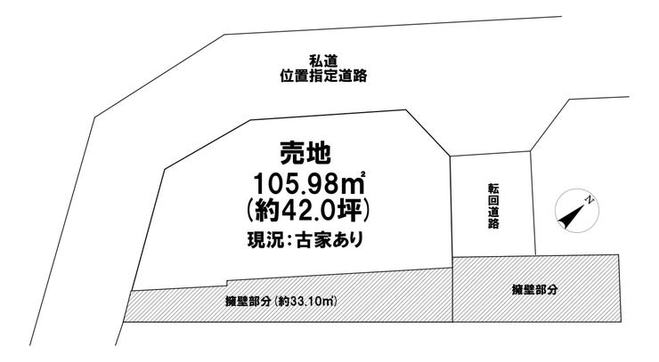 接道 | 北東側(私道)幅 約4.0m 間口 約5.00m 北西側(私道)幅 約4.1m |