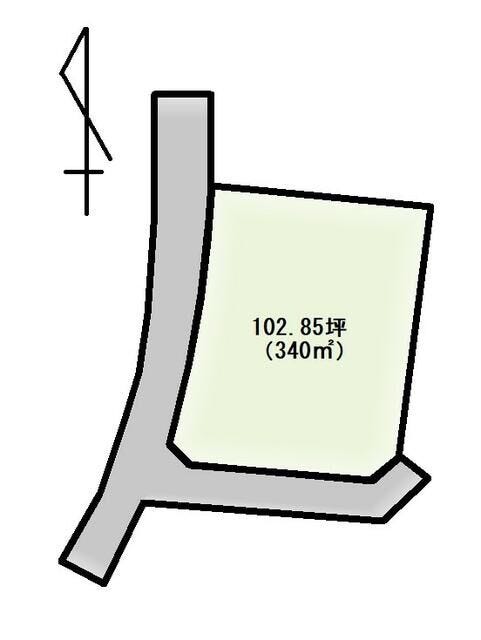 | 土地面積 | 公340㎡(102.85坪) | 接道 | 西側幅 約3.5m 南側幅 約1.8m |