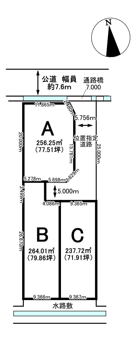 | 土地面積 | 256.25㎡(77.51坪) | 接道 | 北側(公道)幅 約7.6m |
