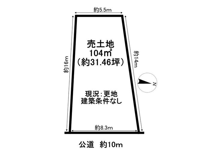 | 土地面積 | 104㎡(31.46坪) | 接道 | 東側(公道)幅 約10.0m 間口 約8.30m |