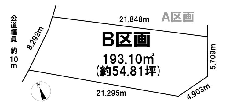 | 土地面積 | 公193.1㎡(58.41坪) | 接道 | 北西側(公道)幅 約10.0m 間口 約8.29m |