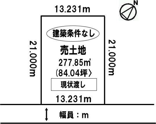 | 土地面積 | 公277.85㎡(84.04坪) | 接道 | 南東側(公道)幅 約6.0m 間口 約13.23m |