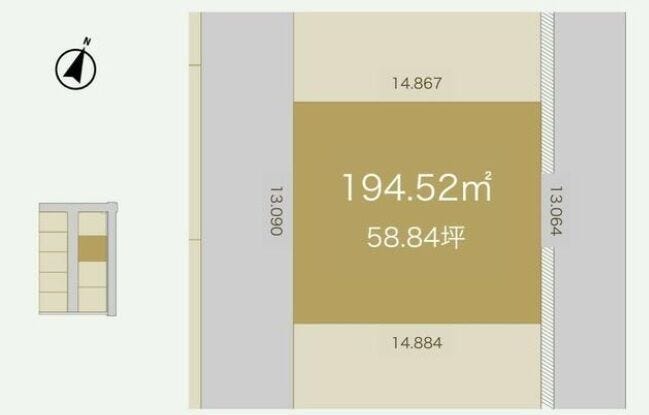 | 土地面積 | 194.52㎡(58.84坪) | 接道 | 西側幅 約6.0m 間口 約13.00m |