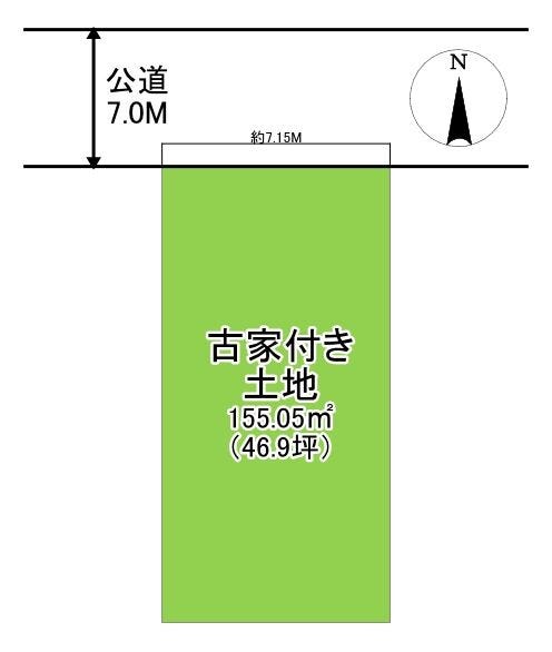 | 土地面積 | 公155.05㎡(46.90坪) | 接道 | 北側(公道)幅 約7.0m 間口 約7.15m |
