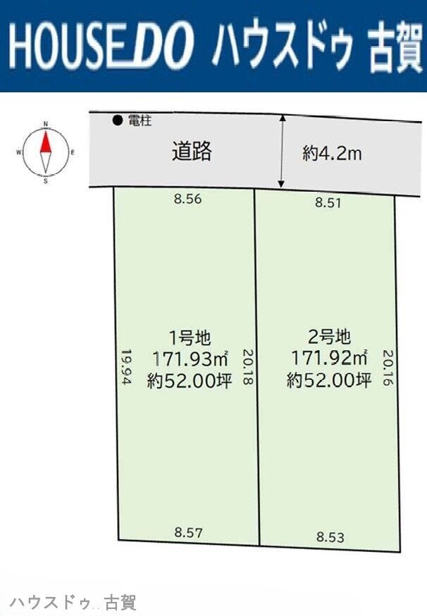 | 土地面積 | 実171.93㎡(52坪) | 接道 | 北側(公道)幅 約4.2m |
