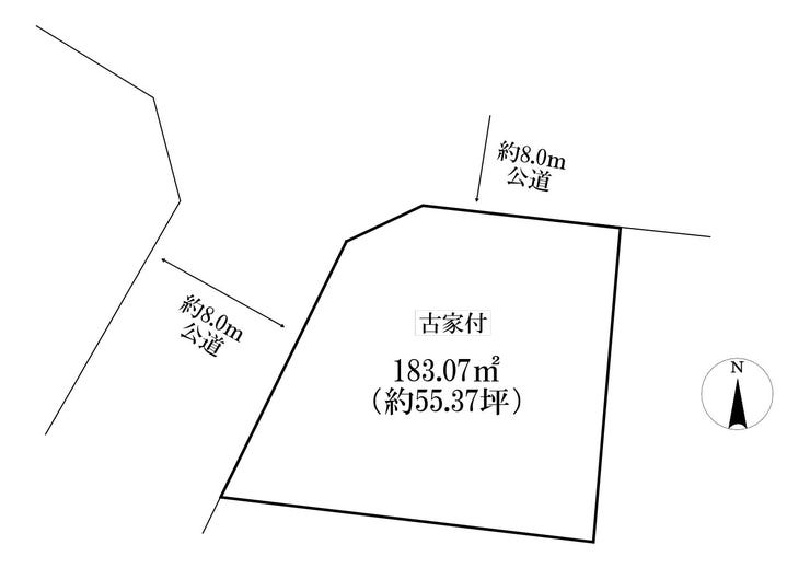 | 土地面積 | 公183.07㎡(55.37坪) | 接道 | 北側(公道)幅 約8.0m 北西側(公道)幅 約8.0m |