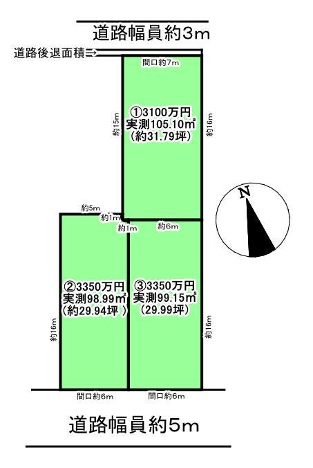 | 土地面積 | 実99.15㎡(29.99坪) | 接道 | 南側(公道)幅 約5.0m 間口 約6.00m |