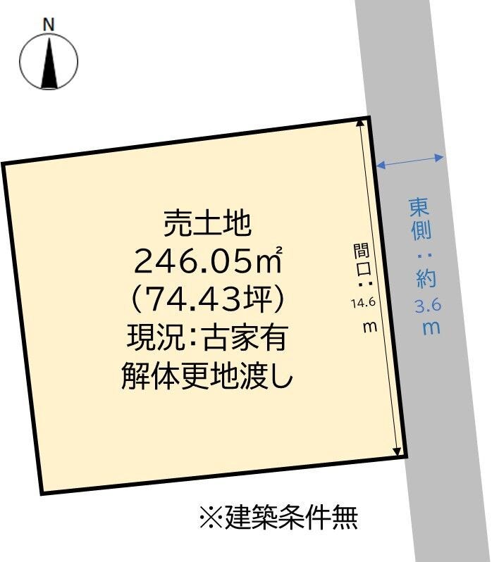 | 土地面積 | 公246.05㎡(74.43坪) | 接道 | 東側(公道)幅 約3.6m 間口 約14.60m |