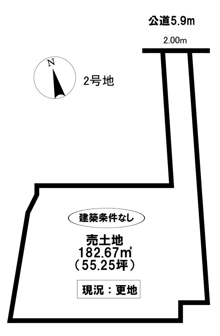 | 土地面積 | 公182.67㎡(55.25坪) | 接道 | 北側(公道)幅 約5.9m 間口 約2.00m |