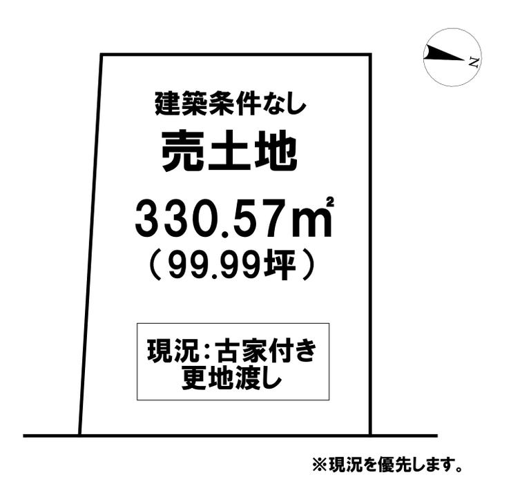 | 備考 | ■平屋建てにもおススメな約100坪の敷地面積! ■解体更地渡しですが、建物を使用することも可能♪ ■小中学校まで徒歩10分以内♪ ■生活の利便性が良い周辺環境です! ■楠目小学校区 |