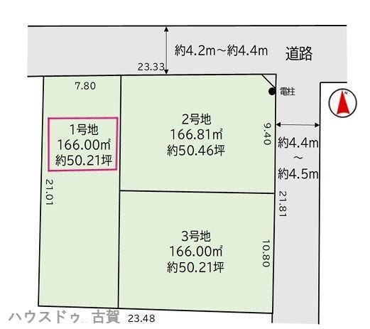 | 土地面積 | 公166㎡(50.21坪) | 接道 | 北側(公道)幅 約4.2m |