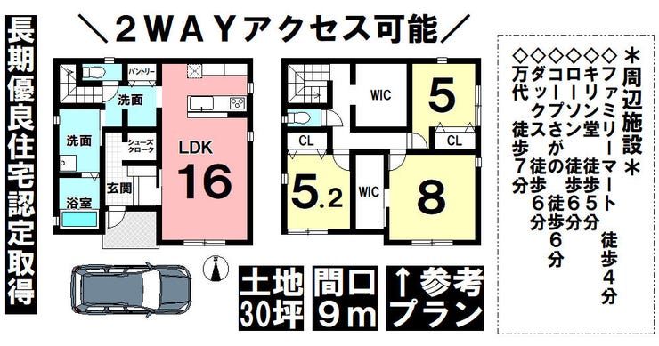 | 備考 | ※タマホーム施工(建物請負価格:約3,200万円+税、外構費別途要) ※外構費用別途要 ※水道分担金99,000円要 【長期優良住宅認定取得】 ◇耐震等級3等級(倒壊防止3等級、損傷防止3等級) ◇一次エネルギー消費等級6等級 ◇断熱等性能等級5等級 ◇劣化対策等級3等級 ◇維持管理対策等級3等級 ◇ホルムアルデヒド対策等級3等級 ◇省令準耐火仕様 |