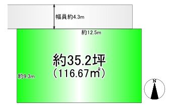| 土地面積 | 公116.67㎡(35.29坪) | 接道 | 北側(公道)幅 約4.3m 間口 約12.00m |