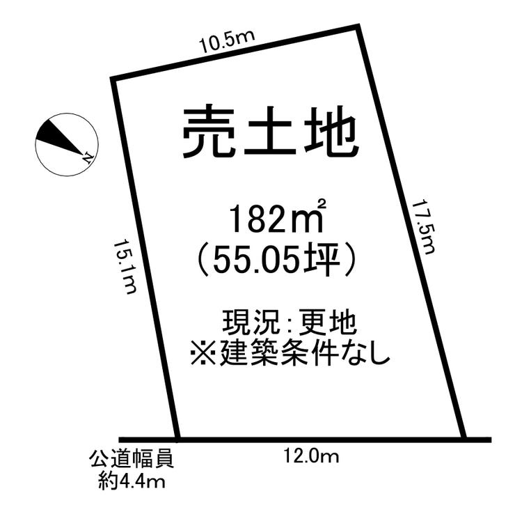| 土地面積 | 182㎡(55.05坪) | 接道 | 北東側(公道)幅 約4.4m 間口 約12.00m |