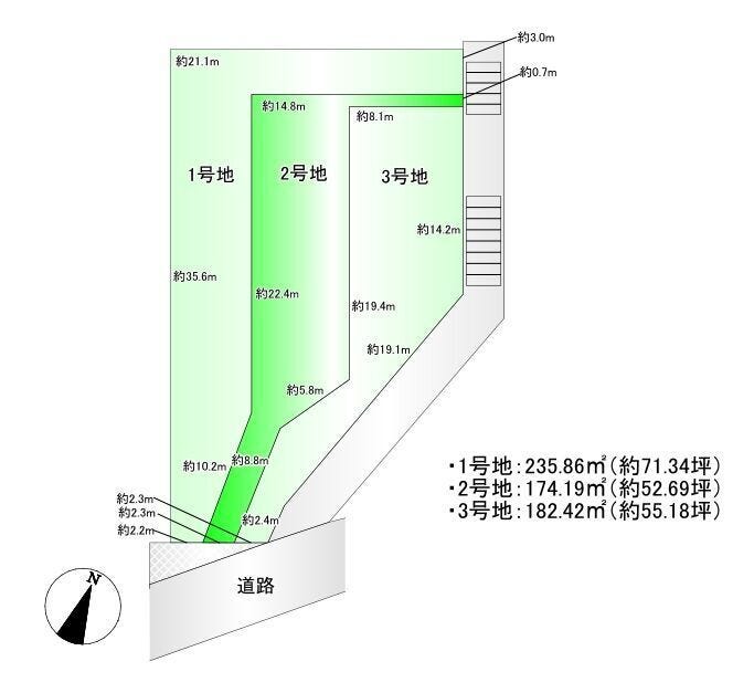 | 土地面積 | 公174.19㎡(52.69坪) | 接道 | 南側(公道)幅 約4.2m 間口 約2.30m |