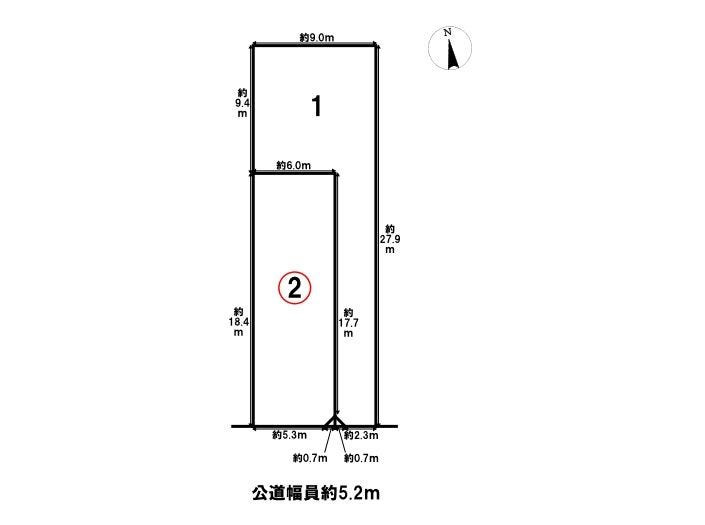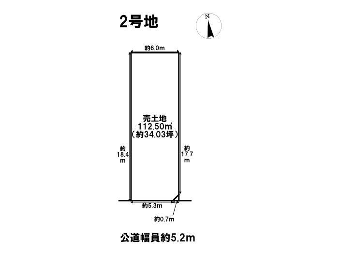 | 土地面積 | 実112.5㎡(34.03坪) | 接道 | 南側(公道)幅 約5.2m 間口 約5.30m |