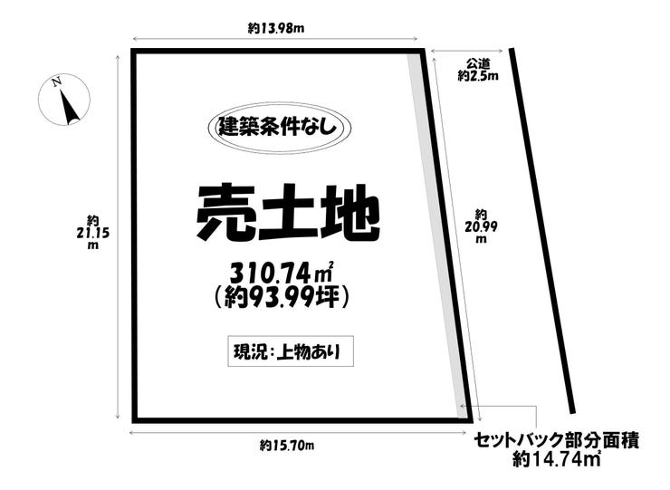 | 土地面積 | 公310.74㎡(93.99坪) | 接道 | 東側(公道)幅 約2.5m 間口 約20.96m |