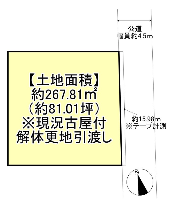 | 土地面積 | 公267.81㎡(81.01坪) | 接道 | 東側(公道)幅 約4.5m |