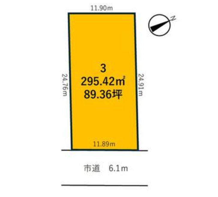 | 土地面積 | 実295.42㎡(89.36坪) | 接道 | 東側(公道)幅 約6.0m 間口 約11.80m |