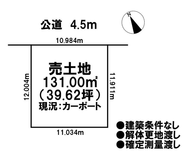| 備考 | ●解体更地渡し ●確定測量渡し ●現況:カーポート |