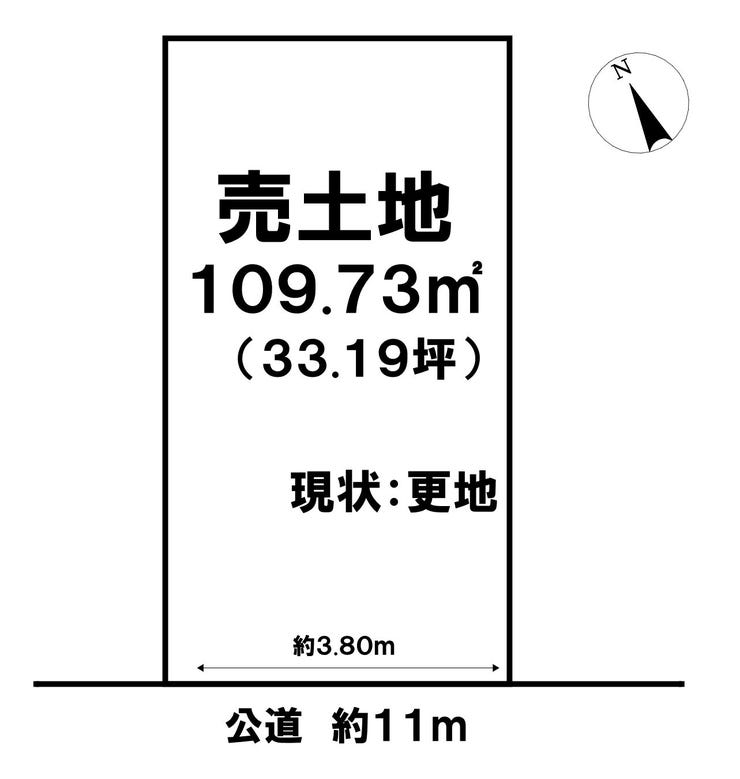 | 土地面積 | 公109.73㎡(33.19坪) | 接道 | 南側(公道)幅 約11.0m 間口 約3.80m |