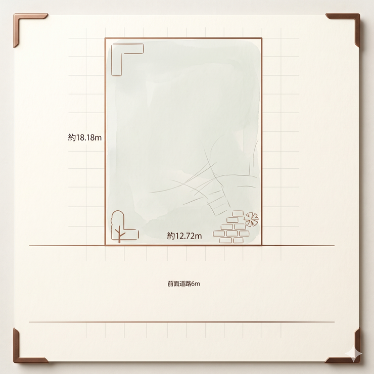 | 土地面積 | 公231㎡(69.87坪) | 接道 | 北東側(公道)幅 約12.7m |