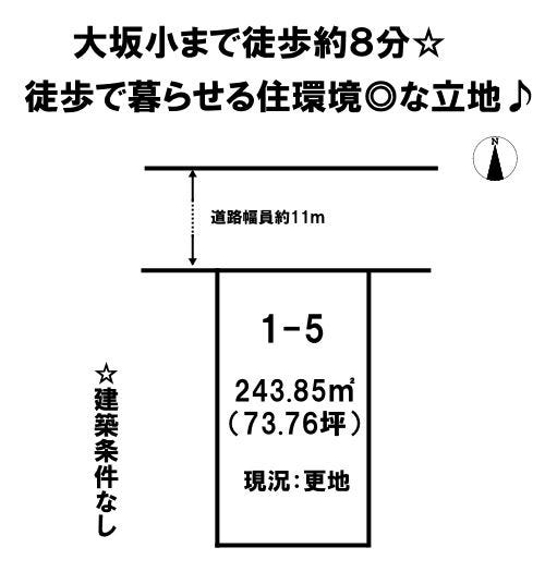 | 土地面積 | 243.85㎡(73.76坪) | 接道 | 北側(公道)幅 約11.0m 間口 約10.16m |