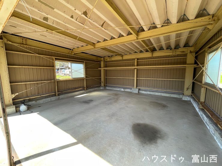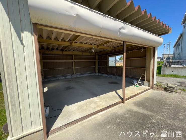 鉄骨シャッター付車庫2台分完備!さらに敷地内に複数台駐車可能なゆとりのある土地です。