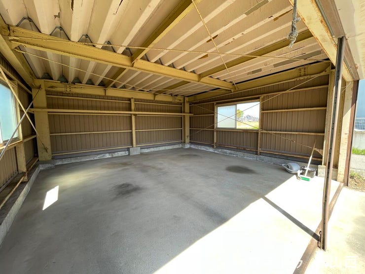 鉄骨シャッター付車庫2台分完備!さらに複数台駐車可能なゆとりの敷地。趣味のガレージとして活用はいかがでしょうか。