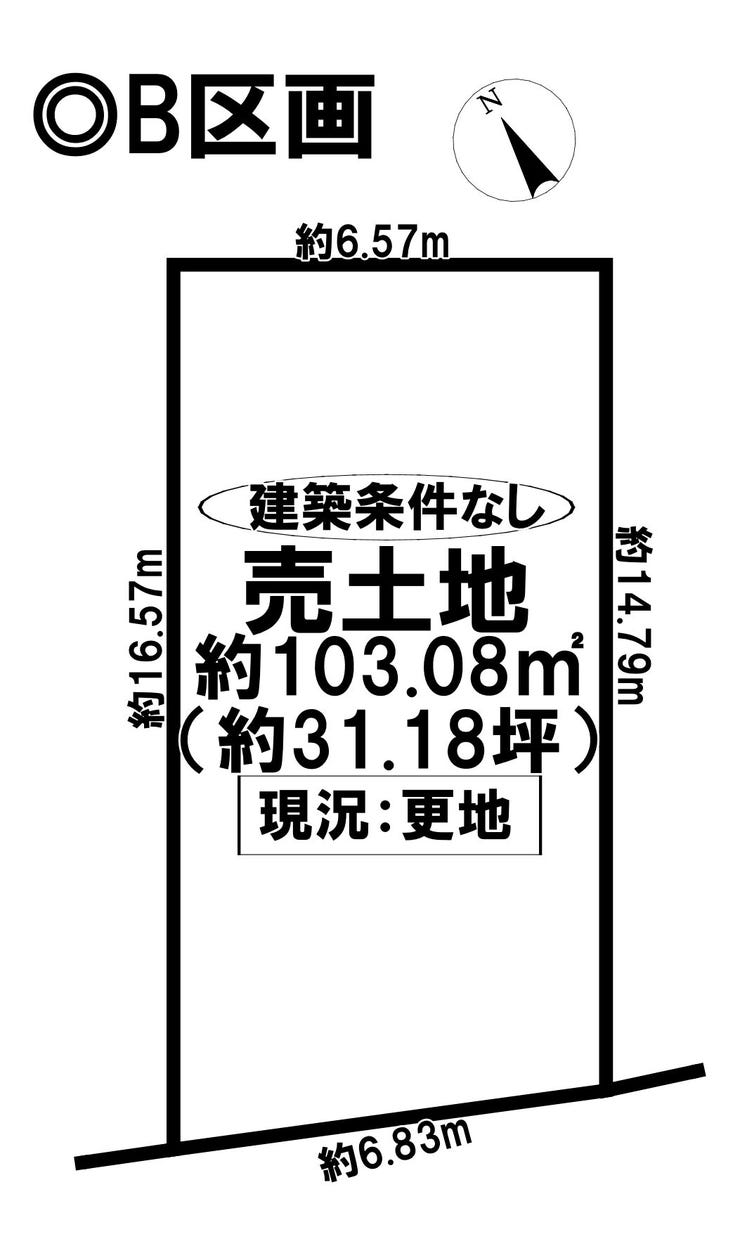 | 土地面積 | 実103.08㎡(31.18坪) | 接道 | 南側(公道)幅 約6.0m 間口 約6.83m |