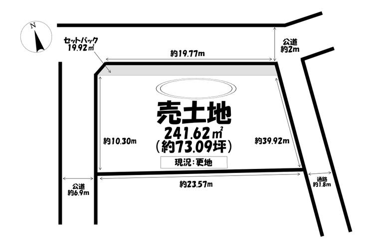 | 土地面積 | 241.62㎡(73.09坪) | 接道 | 北側(公道)幅 約2.0m 間口 約19.77m 西側(公道)幅 約6.9m 間口 約10.30m |