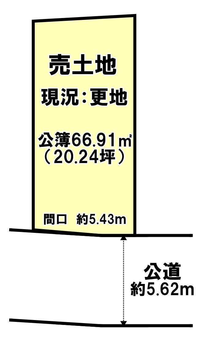 | 土地面積 | 公66.91㎡(20.24坪) | 接道 | 西側(公道)幅 約5.6m 間口 約5.43m |