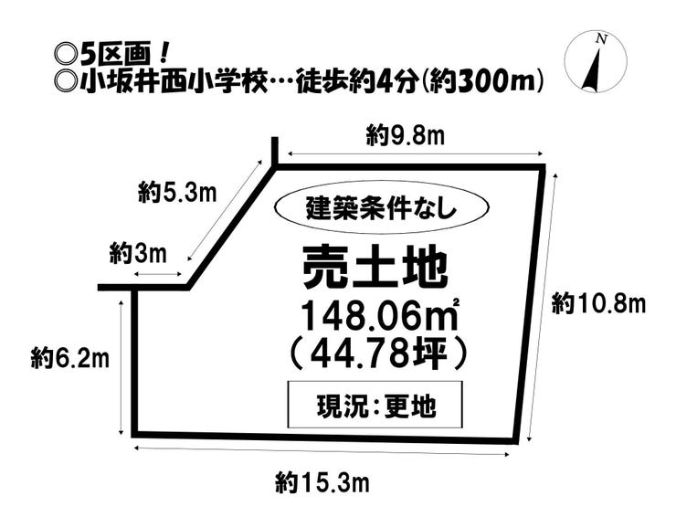 | 土地面積 | 公148.06㎡(44.78坪) | 接道 | 南西側幅 約6.0m 間口 約8.30m |