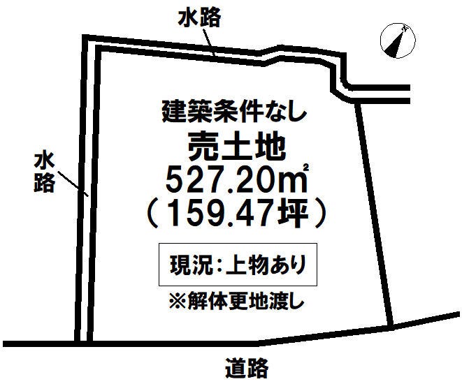 | 土地面積 | 公527.2㎡(159.47坪) | 接道 | 南側(公道)幅 約3.0m 間口 約20.00m |