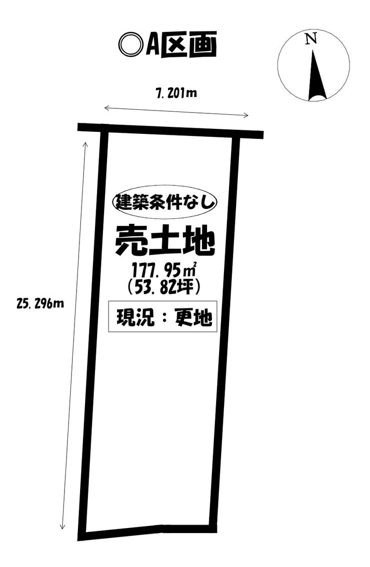 | 土地面積 | 公177.95㎡(53.82坪) | 接道 | 北側(公道)幅 約15.0m 間口 約7.20m |