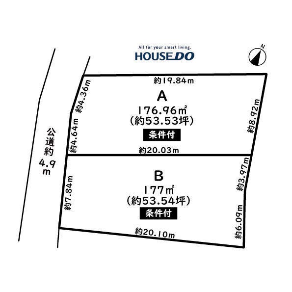 | 土地面積 | 公177㎡(53.54坪) | 接道 | 南西側(公道)幅 約4.9m 間口 約7.84m |