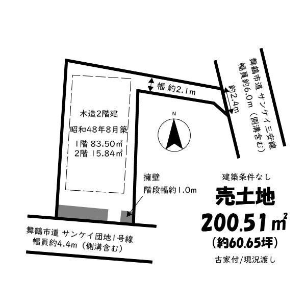 | 土地面積 | 公200.51㎡(60.65坪) | 接道 | 南側(公道)幅 約4.4m 東側(公道)幅 約6.0m 間口 約2.40m |