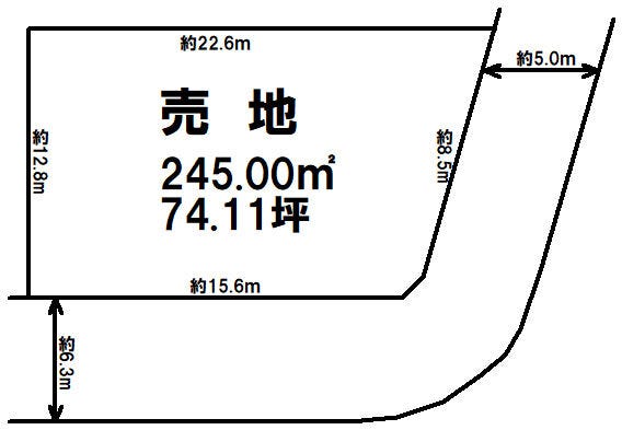 | 土地面積 | 公245㎡(74.11坪) | 接道 | 南側(公道)幅 約6.3m 間口 約15.60m 東側(公道)幅 約5.0m 間口 約8.50m |