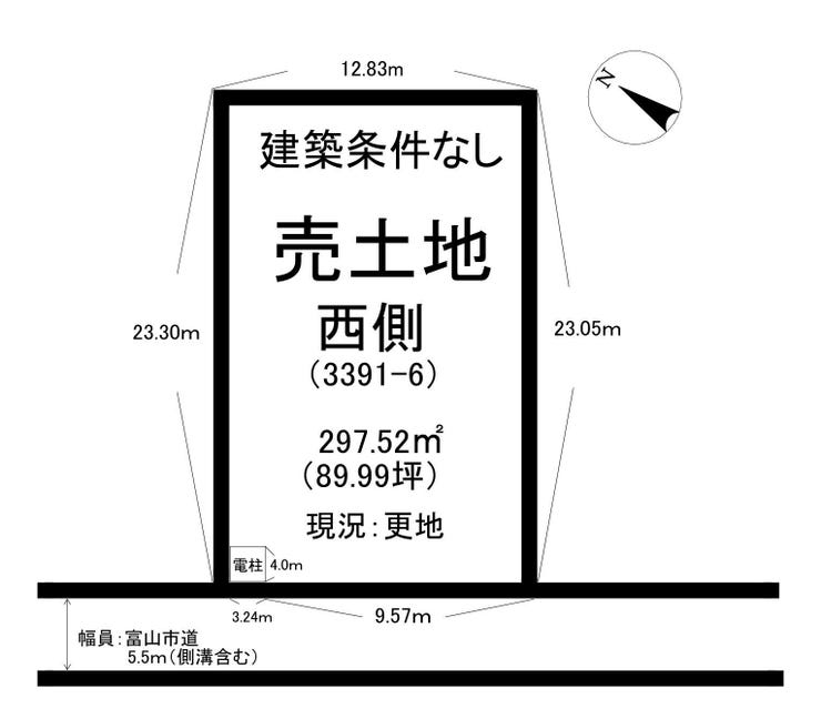 | 土地面積 | 公297.52㎡(89.99坪) | 接道 | 西側(公道)幅 約5.5m 間口 約12.81m |