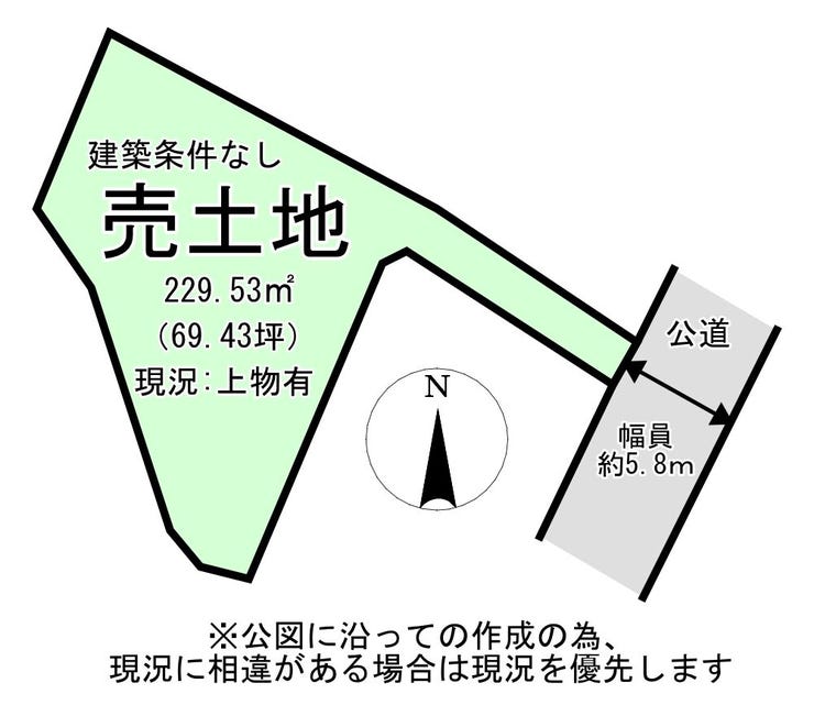 | 土地面積 | 公229.53㎡(69.43坪) | 接道 | 東側(公道)幅 約5.8m 間口 約2.00m |
