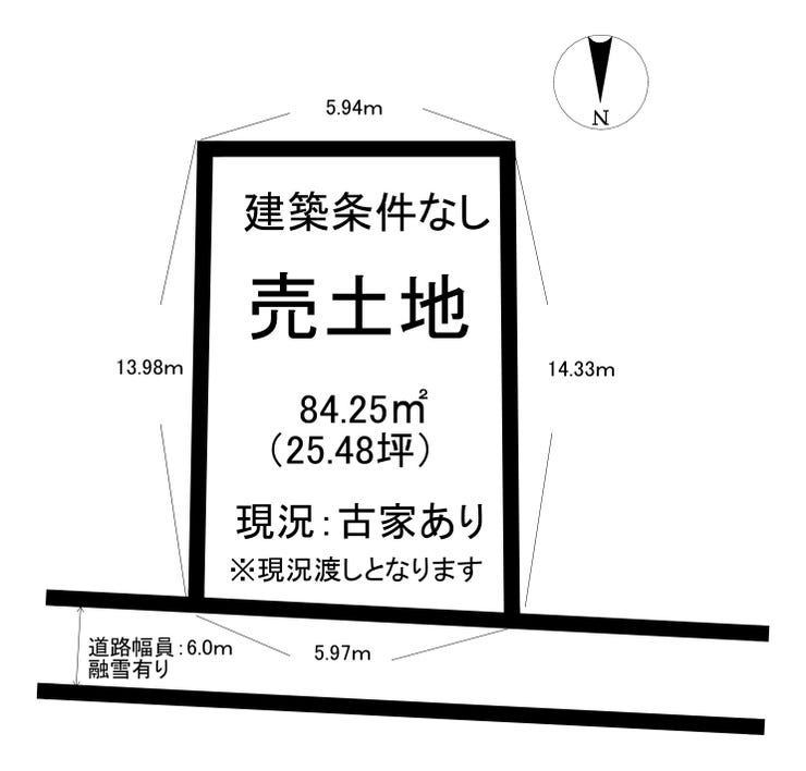 | 土地面積 | 公85.09㎡(25.73坪) | 接道 | 北側(公道)幅 約6.0m 間口 約5.97m |