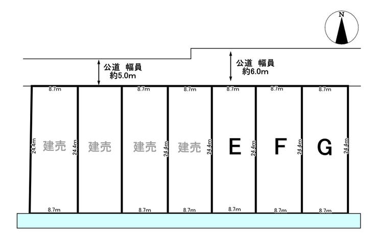 | 土地面積 | 213.43㎡(64.56坪) | 接道 | 北側(公道)幅 約6.0m 間口 約8.70m |