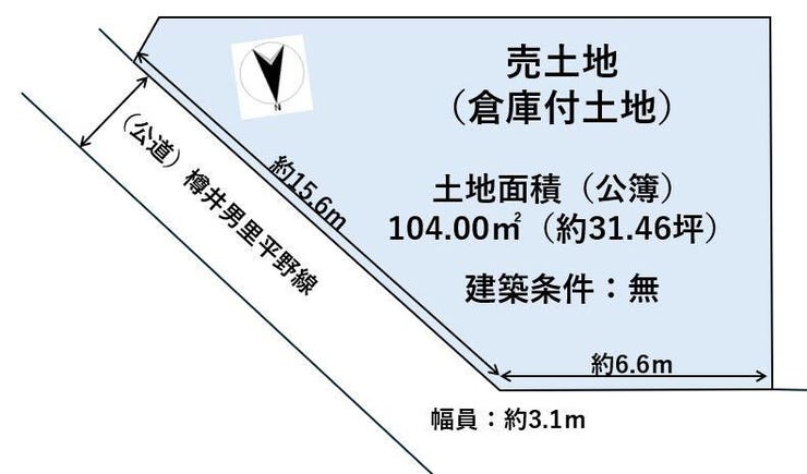 | 土地面積 | 公104㎡(31.46坪) | 接道 | 北東側(公道)幅 約3.1m 間口 約22.20m |