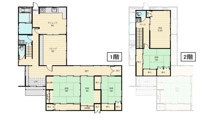 | 備考 | ◎和風造りの2階建住宅(5LDK・51.18坪)とインナーガレージ付き平屋住宅(26.17坪)の2棟セット販売 ◎広い庭や駐車スペースの拡張も可能 |
