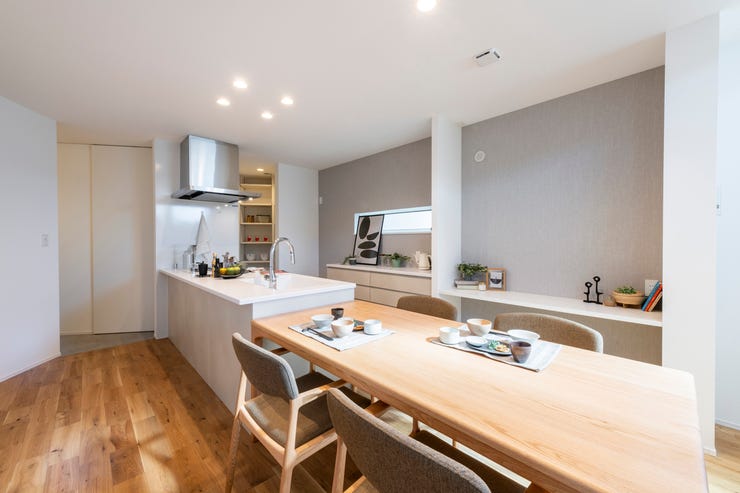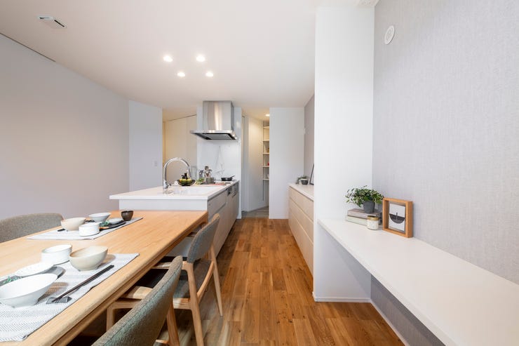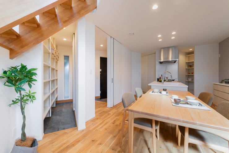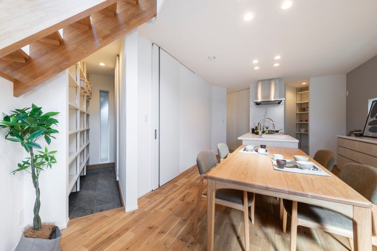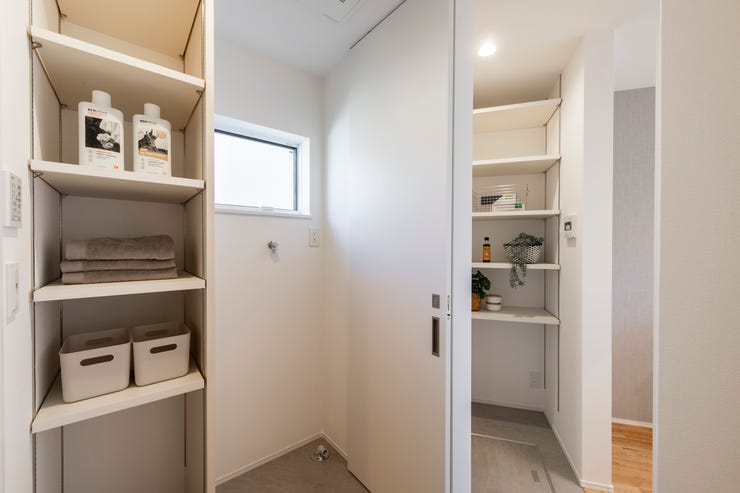 〇キッチン→パントリー→脱衣室へ直線的に動ける家事ラク動線を実現。毎日の片付け・家事を時短化