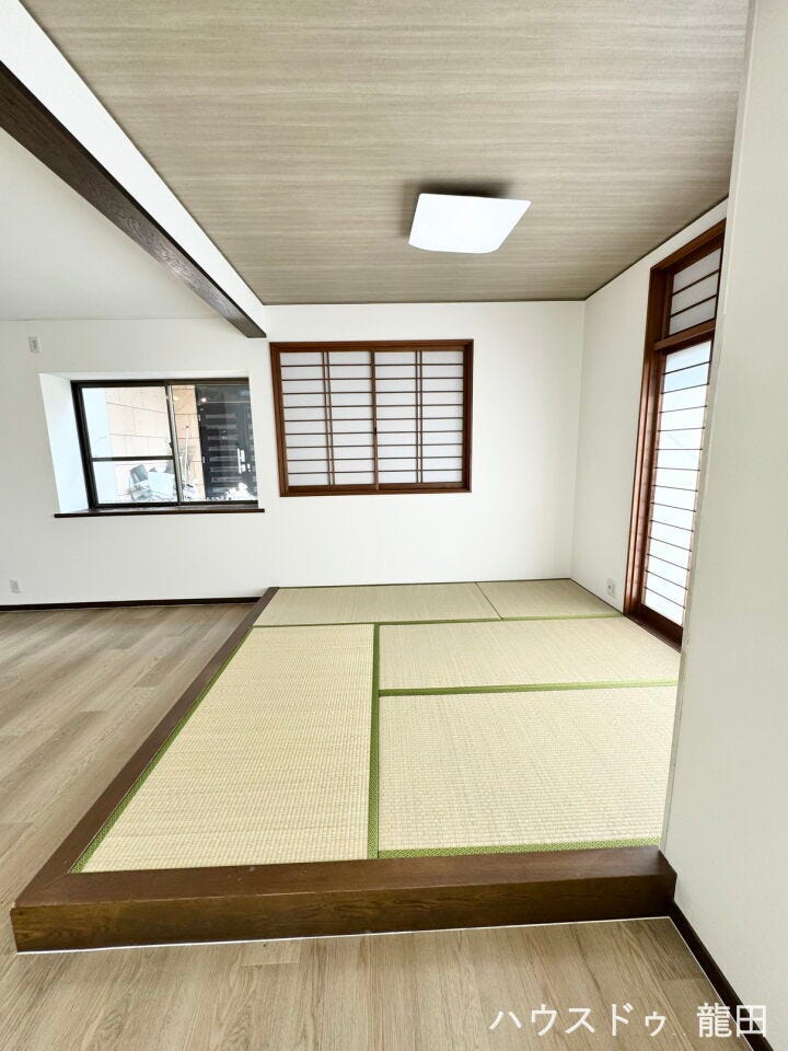 ダイニングテーブルやソファ置いても広いLDKで、ちょっとした畳コーナーが癒しの空間になりそうです