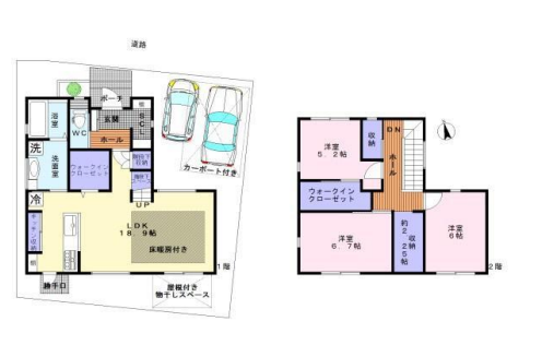 | 建物面積 | 公98.54㎡ | 駐車場 | あり 普通:1台 軽:1台 |
