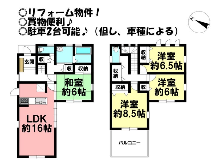 | 備考 | ◎駐車2台可能(但し、車種による) ◎内外装リフォーム 2026年1月 キッチン・浴室・トイレ・壁・全室・洗面所・給湯器・給排水管・全面 2026年1月 外壁・屋根 ◎司法書士売主指定、火災保険見積り取得必須 |